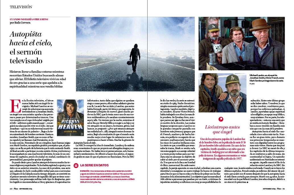 Se puede decir que a Landon siempre le tiraron mucho los temas religiosos y espirituales. Ya los había explotado a gusto y con éxito en su anterior creación, La casa de la pradera, una serie que, además de darle combustible verbal para sus ocurrencias a Chiquito de la Calzada mucho tiempo después, se convirtió en el primer sermón televisivo de tapadillo del que se tiene conocimiento. Los personajes sufrían todo tipo de desgracias, pero los Ingalls se encomendaban a Dios y gracias a él superaban los infortunios, tanto daba que alguien se quedara ciego o cosas peores, ellos salían adelante gracias a su fe. La serie fue un éxito y Landon, que antes había formado parte del elenco protagonista de Bonanza (¡Chiquito de nuevo!), ganó mucho poder en la NBC, que lo tenía como uno de sus rostros emblemáticos y lo sacaban constantemente aquí y allá. Un viernes por la noche, mientras el actor iba por Beverly Hills a recoger a su hijo y se vio atrapado en un atasco, bocinazos, gritos, mal humor, se preguntó: «¿Por qué estamos siempre tan enfadados?». Allí, atrapado entre decenas de autos, llegó a la conclusión de que el mundo sería mucho mejor si en lugar de cabrearnos nos dispusiéramos a hacer el bien. Esa fue la génesis de Autopista hacia el cielo.