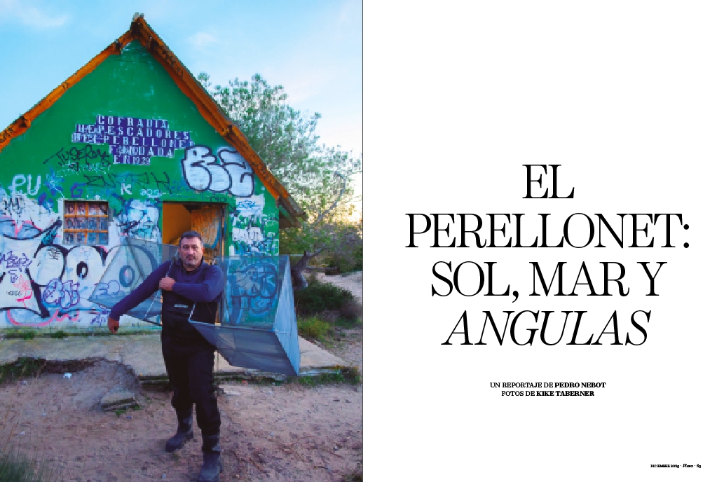 El Perellonet tiene su encanto. Huele a mar y a peix. Las casitas de construcción semicircular del grupo Marqués de Valterra, construidas en los años cincuenta en el casco urbano del pueblo, son el sello personal e intransferible de esta pedanía marinera de València, de postal turística. El Perellonet es un pueblo de fuertes tradiciones y lo confía todo a su patrona, sienten devoción por la virgen del Carmen. Una de esas tradiciones, que vamos a relatar, es la de la pesca o captura de nuestra querida y costosa angula. Exquisita de sabor. La angula es el alevín o cría de la anguila, muy valenciana también e ingrediente principal del all i pebre, plato típico de las poblaciones que forman el magnífico puzzle de los Poblados del Sur.