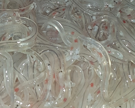 El local de la asociación es amplio, con profundidad, de techos altos y la humedad está presente en el ambiente. El inmueble está separado por un muro de contención dividido en dos secciones, con acceso por una puerta interior a ambas dependencias. En la sección izquierda del local se encuentran las balsas donde miman las angulas cuando las rescatan del canal. Las balsas interiores me recuerdan a los baños veraniegos que me pegaba en la piscina del antiguo chalet que mis padres poseían en la calle trece de la urbanización de La Cañada. Aquella piscina estaba levantada con cemento, pintada en su interior de color azul, sin azulejo, no muy profunda y de tamaño rectangular.