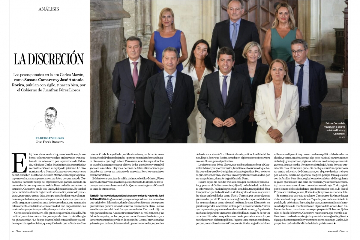 El 17 de noviembre de 2024, cuando militares, bomberos, voluntarios y coches embarrados transitaban de un lado a otro por la provincia de Valencia, el infame Carlos Mazón iniciaba su particular reconstrucción en su equipo de gobierno. Lo hizo nombrando a Susana Camarero como portavoz de su Consell en sustitución de Ruth Merino. El mezquino personaje necesitaba a una persona con carácter, porque la ex de Ciudadanos, flamante fichaje del expresident, no parecía cómoda en las ruedas de prensa y eso que lo de la Dana no había entrado en la ecuación. Camarero era la voz, única, del mazonismo. Es verdad que el individuo atendía fugazmente a los medios, cuando lo perseguían, pero entre que no daba tiempo a profundizar y que él mentía más que hablaba, apenas daba para nada. Y, claro, a quien se le podía preguntar con calma era a la vicepresidenta, que aguantaba estoicamente, con frialdad, con serenidad, con impasibilidad, las incómodas preguntas que le llegaban por todos lados.