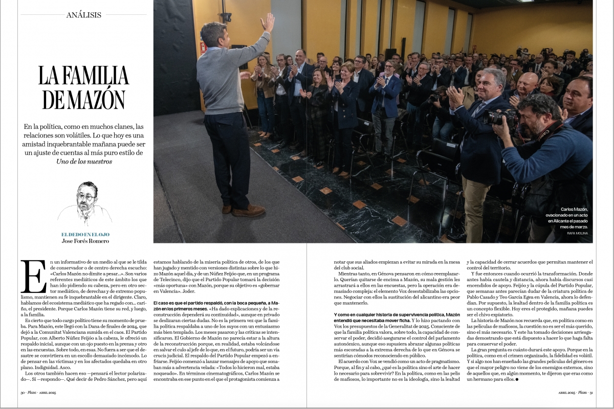 La historia de Mazón nos recuerda que, en política como en las películas de mafiosos, la cuestión no es ser el más querido, sino el más necesario. Y este ha tomado decisiones arriesgadas demostrando que está dispuesto a hacer lo que haga falta para conservar el poder.