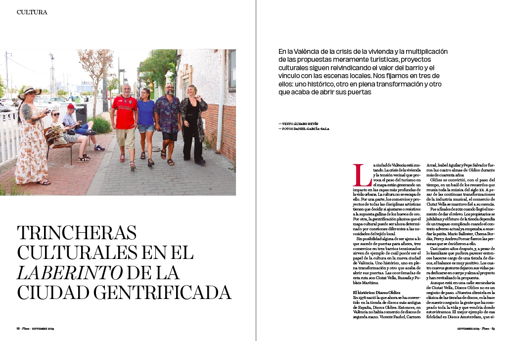 Sin posibilidad alguna de ser ajeno a lo que sucede de puertas para afuera, tres comercios en tres barrios tensionados sirven de ejemplo de cuál puede ser el papel de la cultura en la nueva ciudad de València. Uno histórico, uno en plena transformación y otro que acaba de abrir sus puertas. Las coordenadas de esta ruta son Ciutat Vella, Russafa y Poblats Marítims.