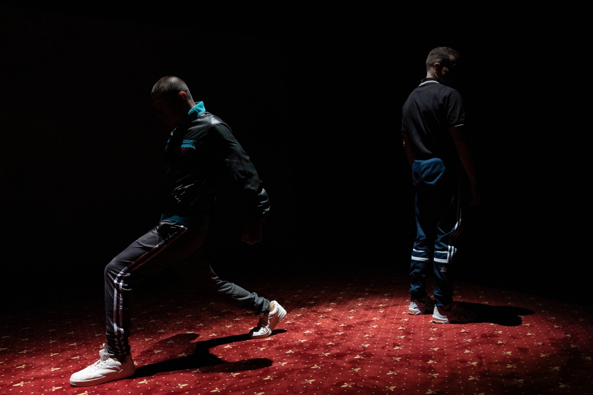 Ahora bien, ¿cómo se expresan todas estas ideas a través del baile? Para Duran este reto se supera gracias al excelente diseño escenográfico de Adrià Pina y la música de Joan Borràs. También se consigue a través de movimientos que mezclan baile con escenas de pelea para hablar de la virilidad y la identidad de los hombres. “Buscamos una imagen ruda acompañada por la teatralidad sobre el escenario. Hay escenas de lucha y otras de baile, investigamos para traducir nuestro relato de diferentes formas”, explica Duran. Una pluralidad de lenguajes que junto a la música y el juego escénico hace que los cuerpos hablen.