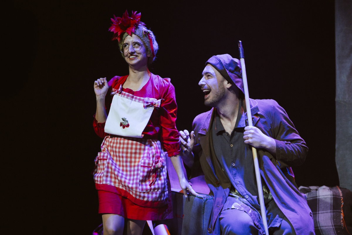 María Poquet ha diseñado la ropa de los personajes a partir de piezas procedentes de otros montajes, y parte de la escenografía nace de la participación directa del público infantil. Durante el proceso, un grupo de niños y niñas de siete años aportó objetos de desecho de sus casas, que pasaron a formar parte del escenario. “Hemos reutilizado artículos que iban a tirar”, explica el dramaturgo. Cuando asistieron a una función, reconocieron “sus basuras” sobre el escenario, cerrando así un círculo de sentido.