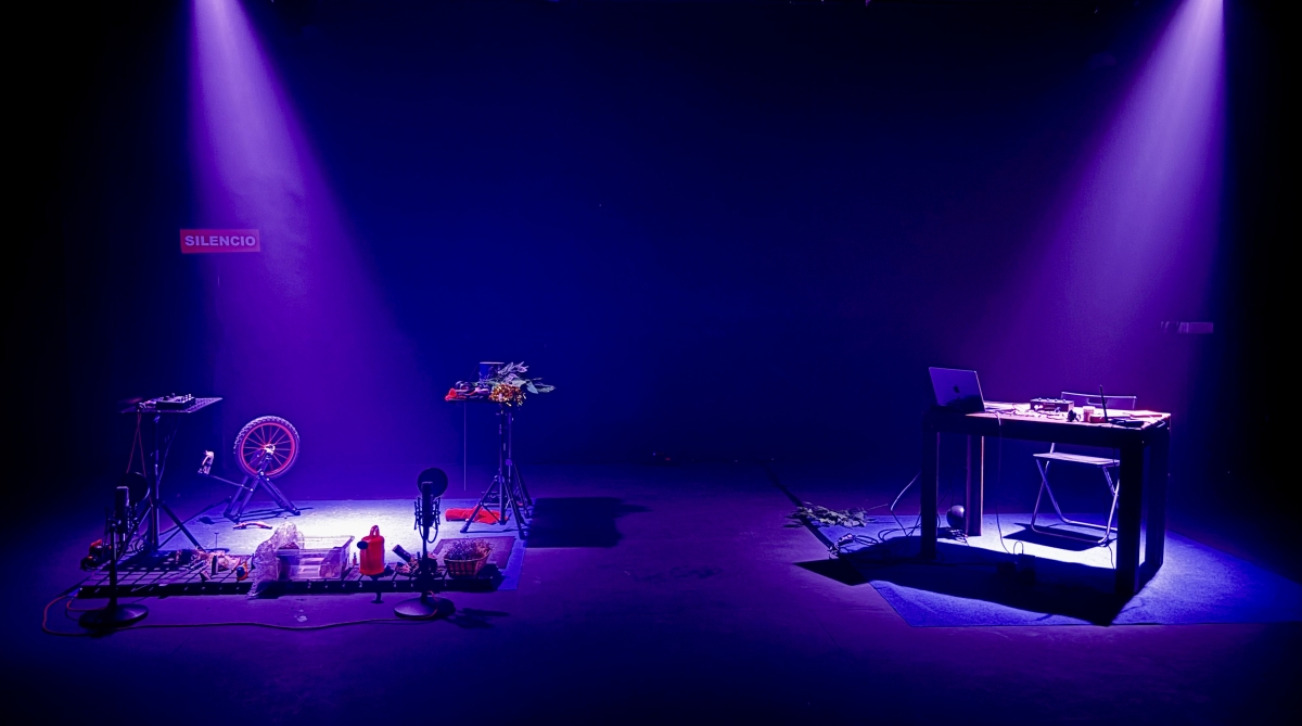 “El motor de esta investigación viene de poner en paralelo la potencialidad del sonido del cine (que no tiene límites, que puede producir el paisaje o la acción que se sueñe) y la limitación que tiene el teatro (que a su vez es su gran potencialidad, que únicamente lo que tiene es la representación)”, explica la creadora. En escena, dos foley artists producen en directo los sonidos de una película invisible, mientras el público, equipado con auriculares, asiste a una experiencia que ocurre a la vez en lo colectivo y en lo íntimo.