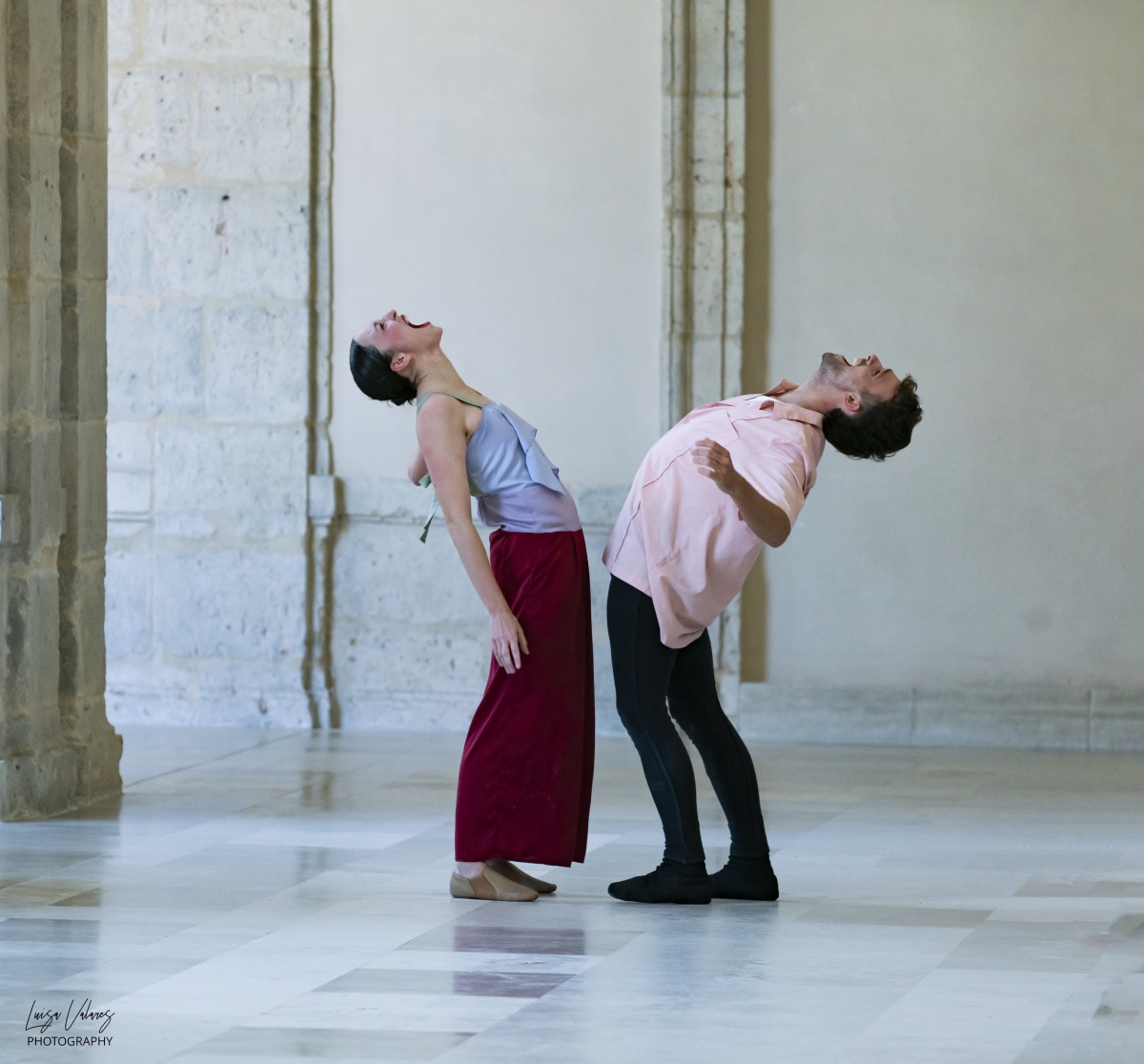 La elección de dúos, y no de tríos o de elencos corales, responde a una voluntad clara de intimidad. “Nos apetecía el cuerpo a cuerpo —declara Meritxell Barberá—. Si hay más bailarines, la energía se dispersa, se vuelve una pieza algo más festiva. Queríamos trabajar esa relación inmediata, casi visceral, que se da en la cercanía de dos cuerpos que se escuchan”.