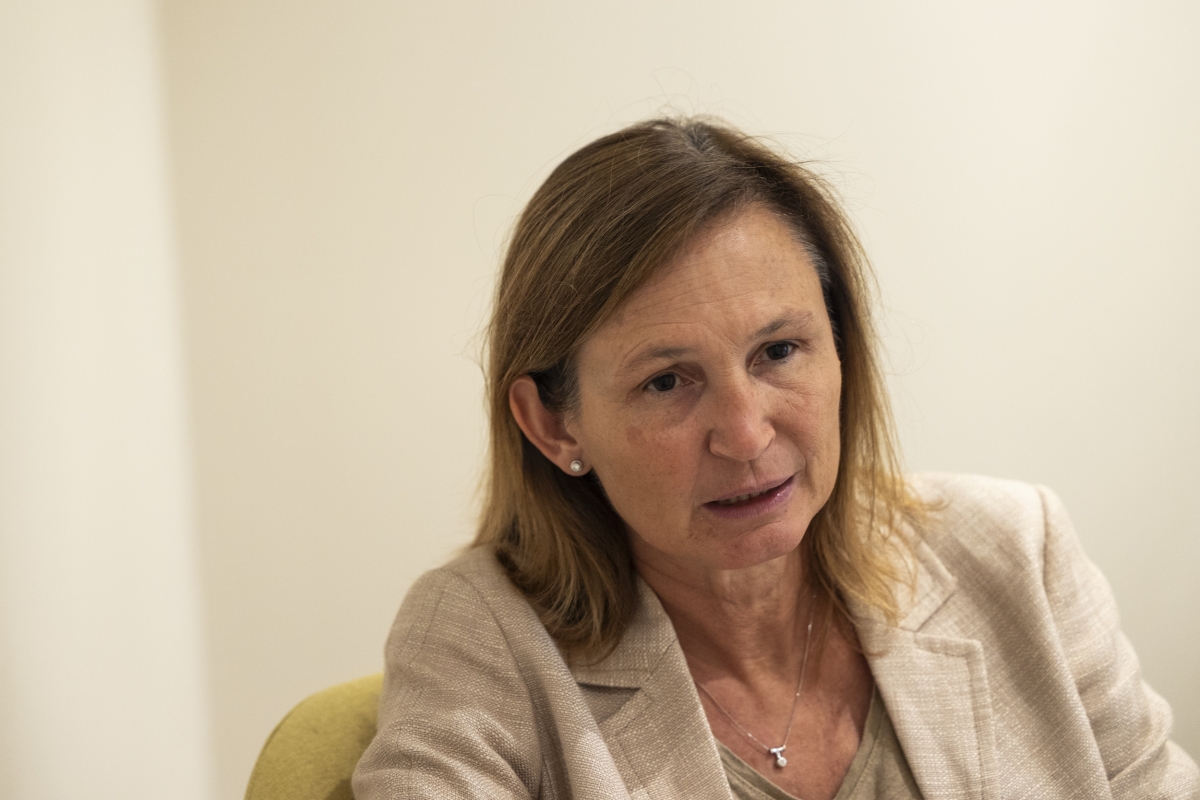 VALÈNCIA. Esther Marín Riaño, directora de Gestión de Activos y Sostenibilidad en CBNK Gestión de Activos, atiende a Plaza desde la recién inaugurada oficina de la entidad en la céntrica calle Colón de València. Marín visita el 'Cap i Casal' en el marco de un roadshow de esta compañía por varias ciudades españolas con el objetivo de estrechar lazos y captar nuevos clientes. Cabe mencionar que CBNK es una entidad de referencia para los profesionales esenciales de la salud y las ingenierías, tradicionalmente los colectivos de farmacéuticos e ingenieros de caminos.