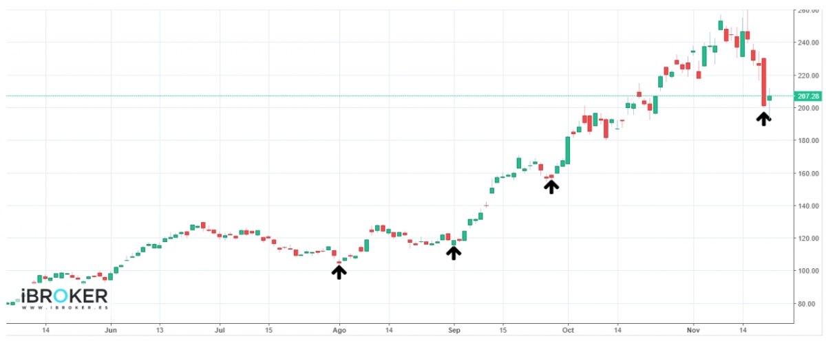 Será clave vigilar cómo evoluciona la acción en las próximas sesiones, especialmente si aparecen velas con una gran caída diaria en varias sesiones sucesivas que puedan anticipar una pausa más profunda.