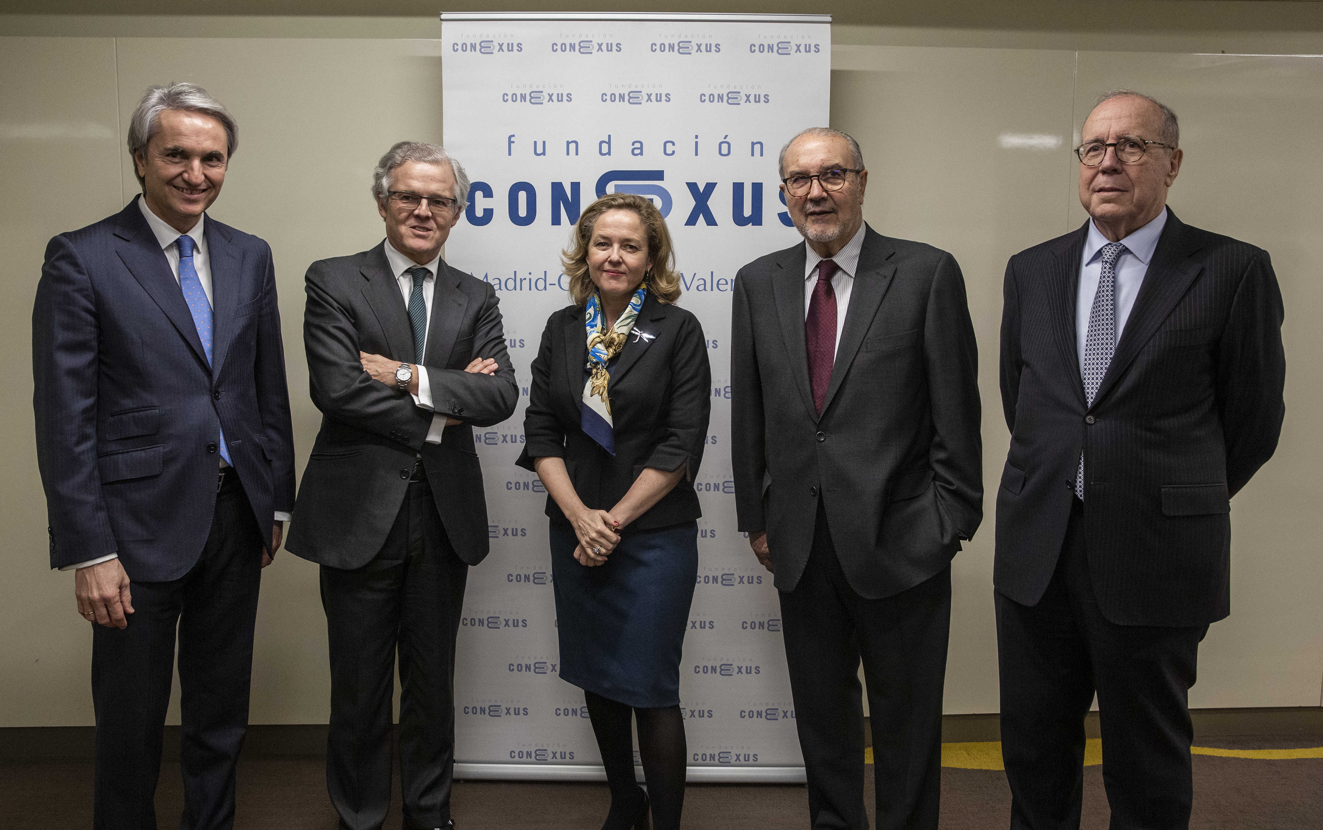 La ministra de Economía ha sido presentada por el presidente de Conexus, Manuel Broseta, y por el ex Vicepresidente del Gobierno, Pedro Solbes. Manuel Broseta ha manifestado su "convicción de que España es un gran país, fruto de la unión de 17 comunidades autonómas muy ricas y diversas, que tienen el deber y la obligación de colaborar y cooperar entre ellas, fiel y lealmente, para contribuir a la grandeza común y a la prosperidad y felicidad de sus habitantes. Y las personas de Conexus, como sociedad civil, estamos muy comprometidas con esta finalidad, que venimos compartiendo y haciendo efectiva con otras asociaciones de sociedad civil tanto nacionales como regionales de toda España".