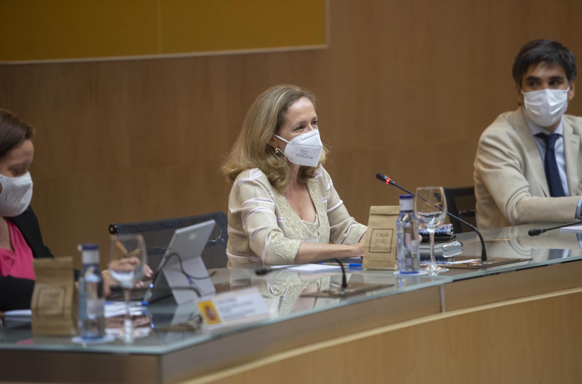 Sobre los fondos europeos, Calviño ha explicado que el Ejecutivo español está terminando el proceso junto con la Comisión Europea para que se produzca el primer desembolso de prefinanciación de 9.000 millones, que se prevé en el curso del verano.