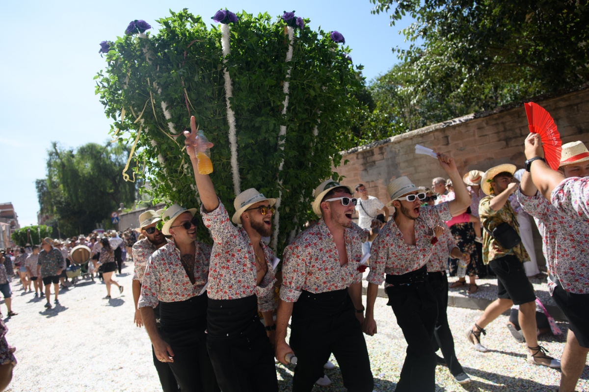 - La comitiva de la fiesta transporta una 'alfàbega' hasta la iglesia.- Foto: KIKE TABERNER