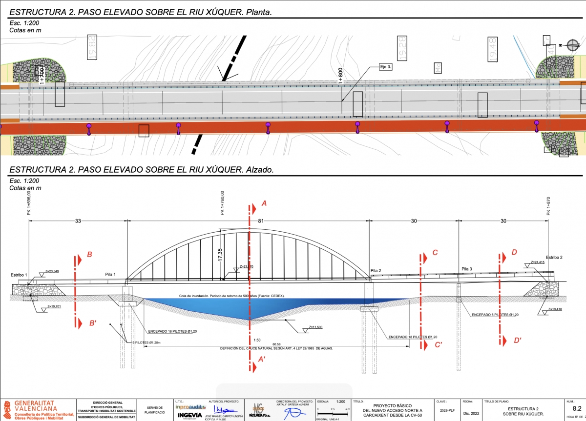 La carretera se proyecta con una rasante ajustada a las cotas de las infraestructuras existentes y con obras de drenaje de gran capacidad, de modo que el agua pueda circular sin que la vía actúe como una barrera. En los puntos más sensibles, el trazado se eleva para adaptarse a los proyectos de encauzamiento del barranco de Barxeta previstos por la Confederación Hidrográfica del Júcar (CHJ).