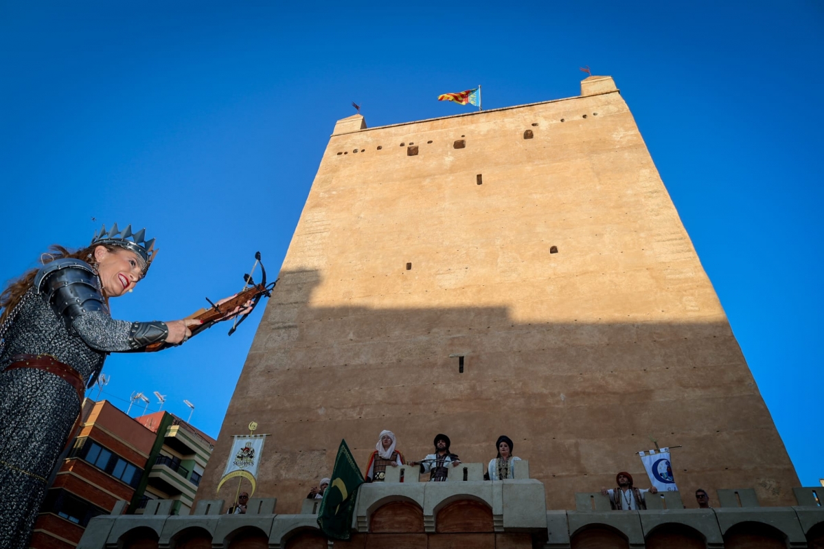 En una recreación histórica llena de pólvora y emoción, las tropas cristianas, bajo el mando de la capitana Merce Mora y su alférez Julio Palop, lograron recuperar el control de la Torre, enarbolando la bandera cristiana que ondeará simbólicamente hasta las fiestas del próximo año.