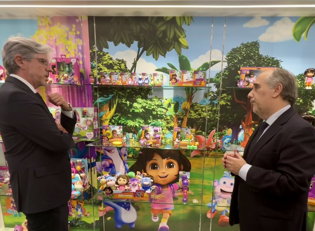 Durante su visita, en la que estuvo acompañado por Ignacio Gaitán, director de Spin Master Iberia, Felipe Carrasco ha conocido el nuevo catálogo de la compañía, caracterizado por su apuesta por la innovación, la calidad y la experiencia de juego educativa.