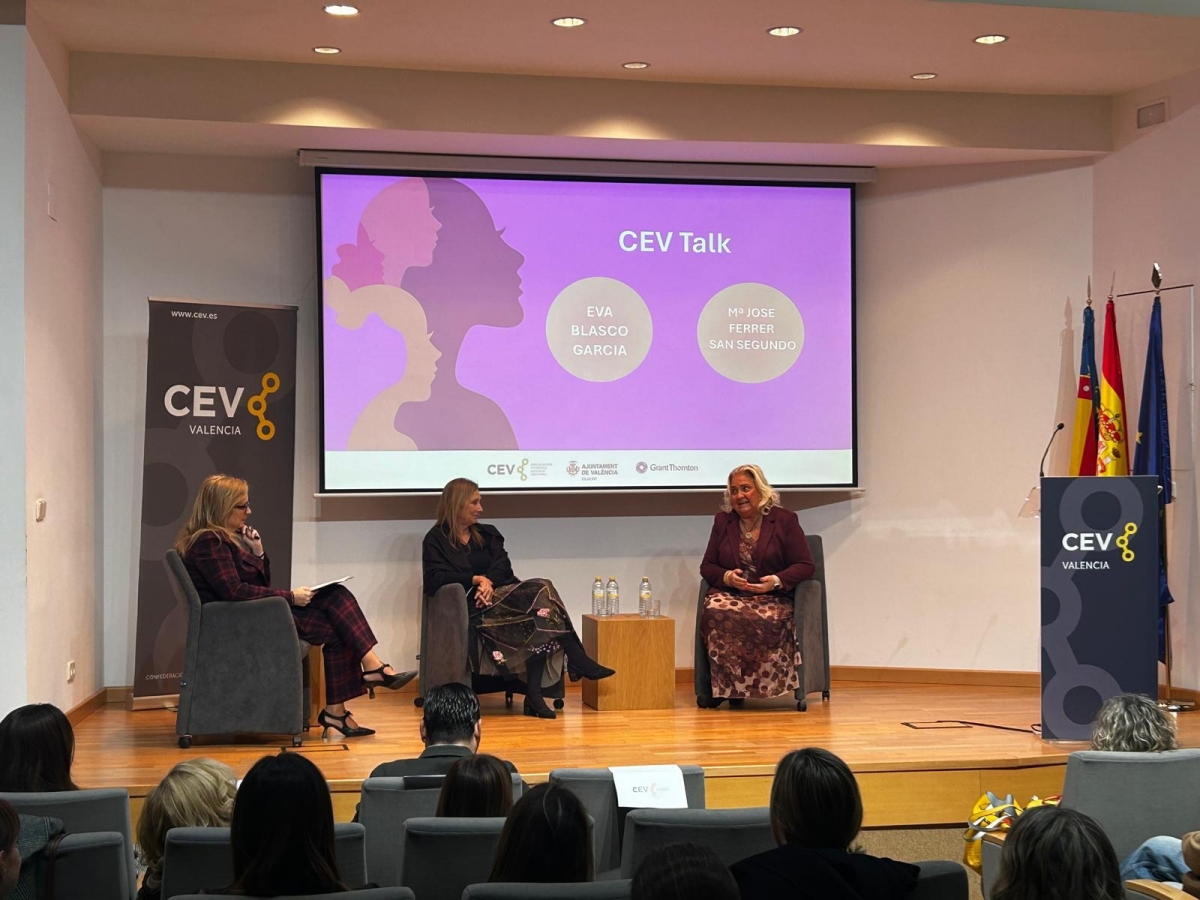 La jornada ha concluido con un diálogo entre la presidenta de CEV Valencia y la concejala de Hacienda y Transparencia, Mª José Ferrer San Segundo, en la que han compartido su experiencia personal, además de analizar los retos para las próximas generaciones y el papel del sector público y privado para impulsar cambios reales en materia de igualdad y liderazgo.