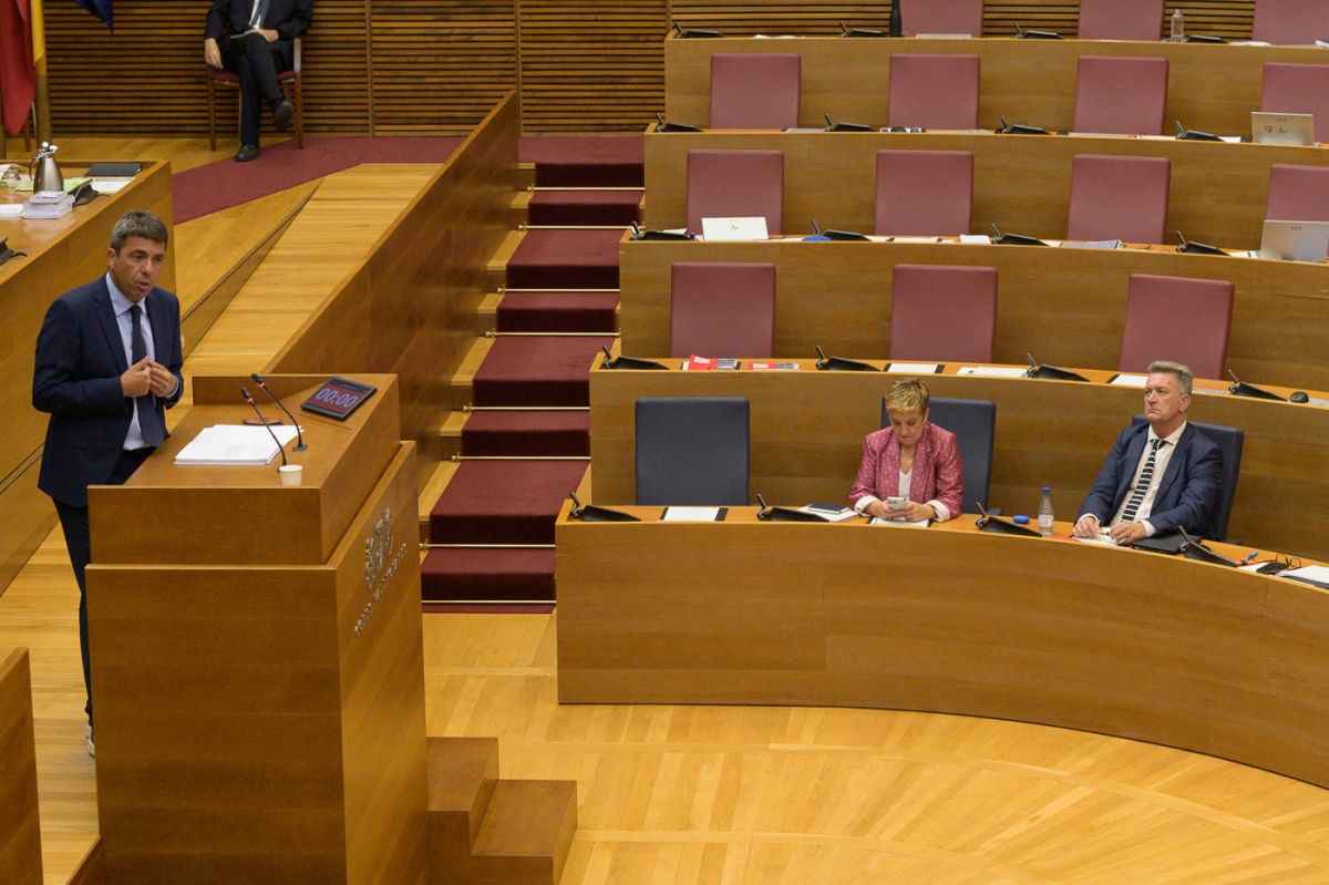 - El president de la Generalitat, Carlos Mazón, este martes en Les Corts Valencianes. -