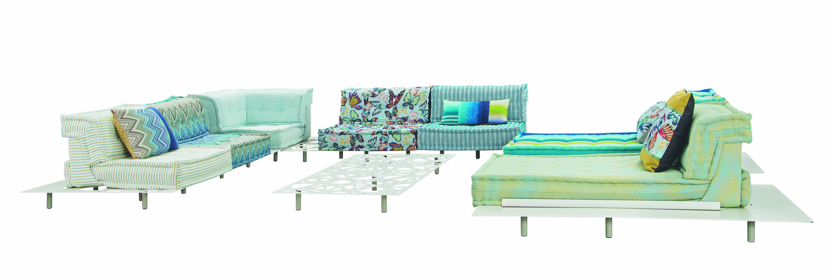 Presentado en versión outdoor, el best-seller de Roche Bobois durante cuarenta 40 años conserva el carácter modular y componible que lo llevo al éxito. Los cojines en colores refrescantes parecen flotar sobre plataformas de metal perforadas que lo separan del suelo.