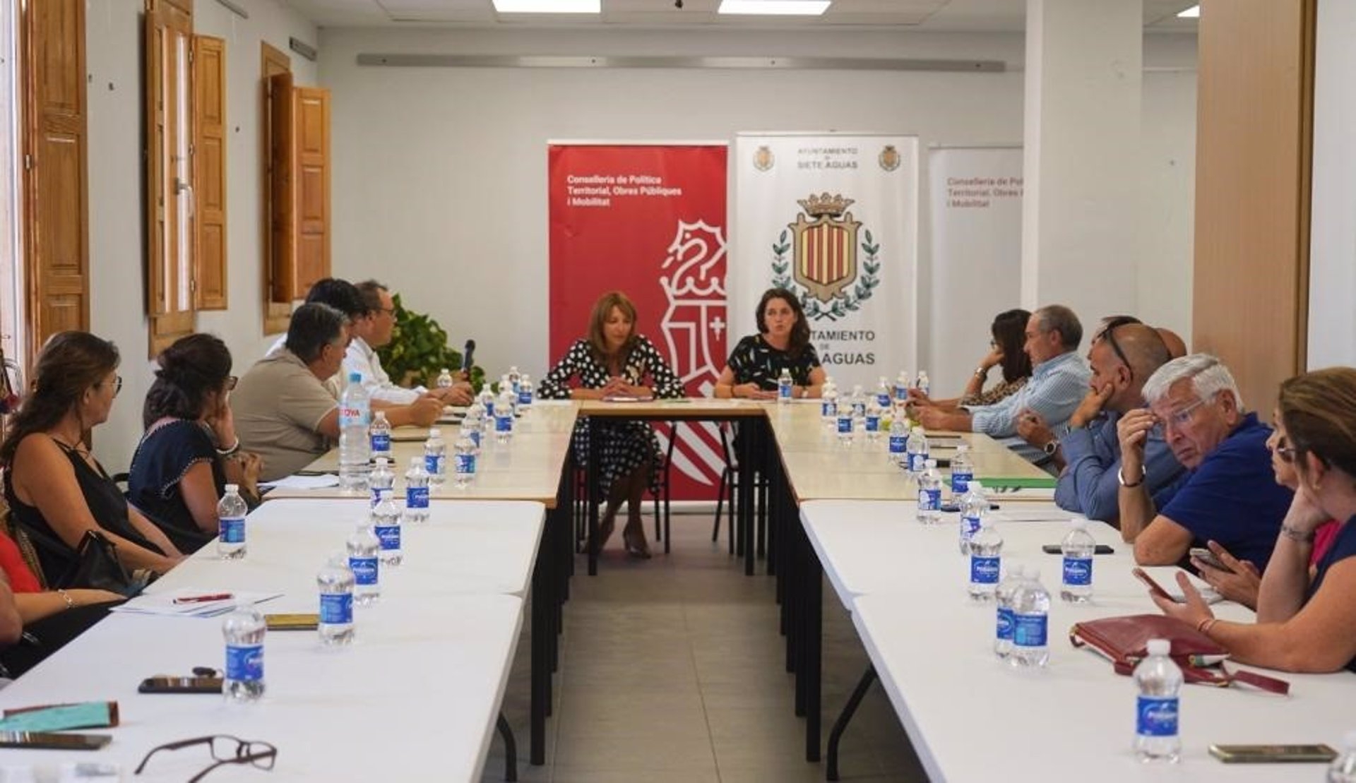 Para informar de estas nuevas ayudas, la secretaria autonómica de Obras Públicas, Transportes y Movilidad Sostenible, María Pérez, se ha reunido en Siete Aguas con más de una veintena de alcaldes y alcaldesas de las comarcas de la Hoya de Buñol, la Plana de Utiel-Requena, la Serranía, el Rincón de Ademuz y el Valle de Cofrentes-Ayora,