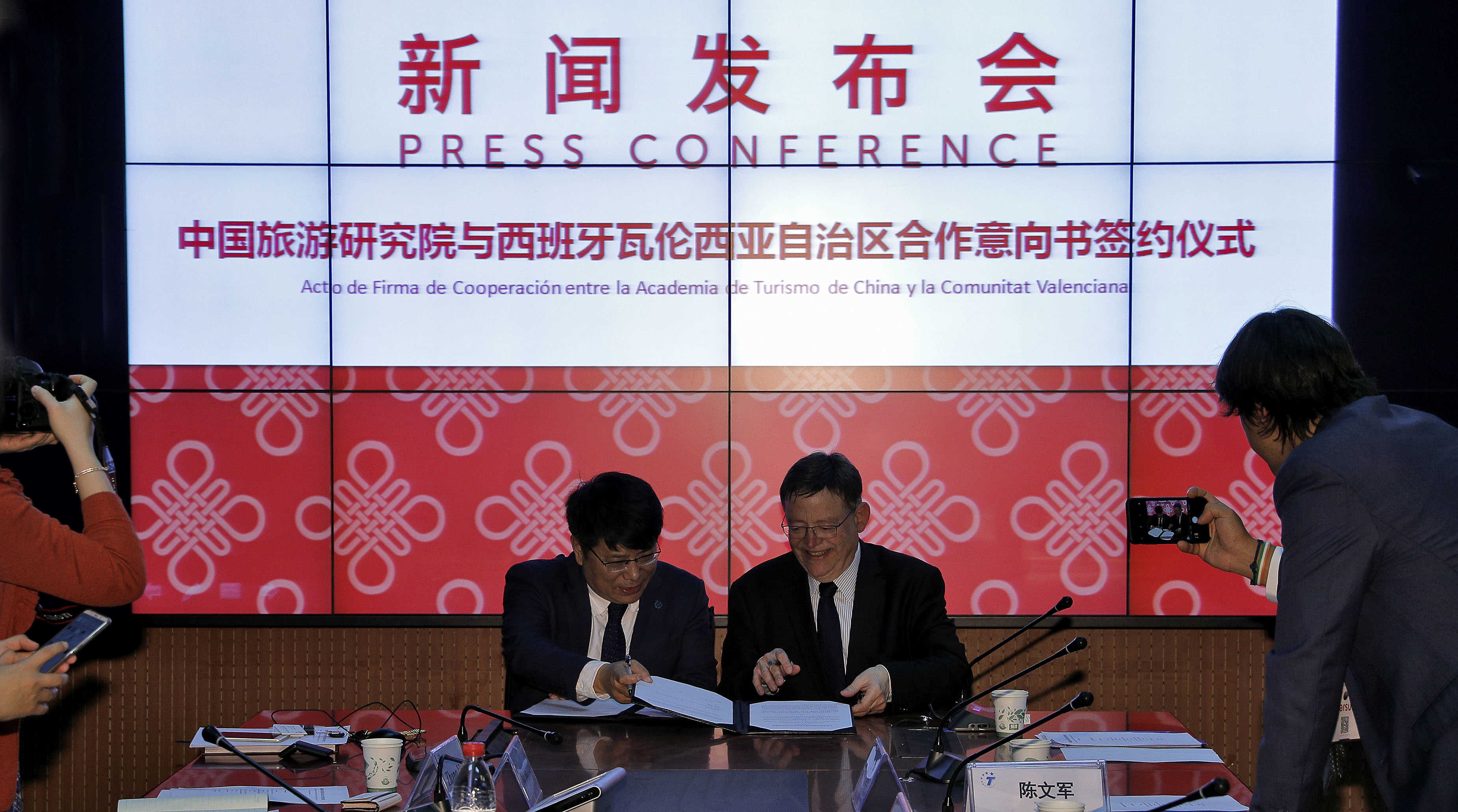 VALÈNCIA. (EP). El president de la Generalitat, Ximo Puig, ha firmado este martes un acuerdo con el director de la Academia de Turismo China, Dai Bin, para iniciar una colaboración que permita la obtención del certificado chino que proporcionará el "aterrizaje masivo" de turistas de este país asiático.