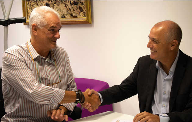 VALÈNCIA. El presidente del Colegio Territorial de Arquitectos de València, Mariano Bolant, y el director general de Feria Valencia, Enrique Soto, han firmado en la sede del CTAV un acuerdo de colaboración que permitirá al colegio de arquitectos el montaje de un stand informativo en algunos de los certámenes de Feria Valencia.