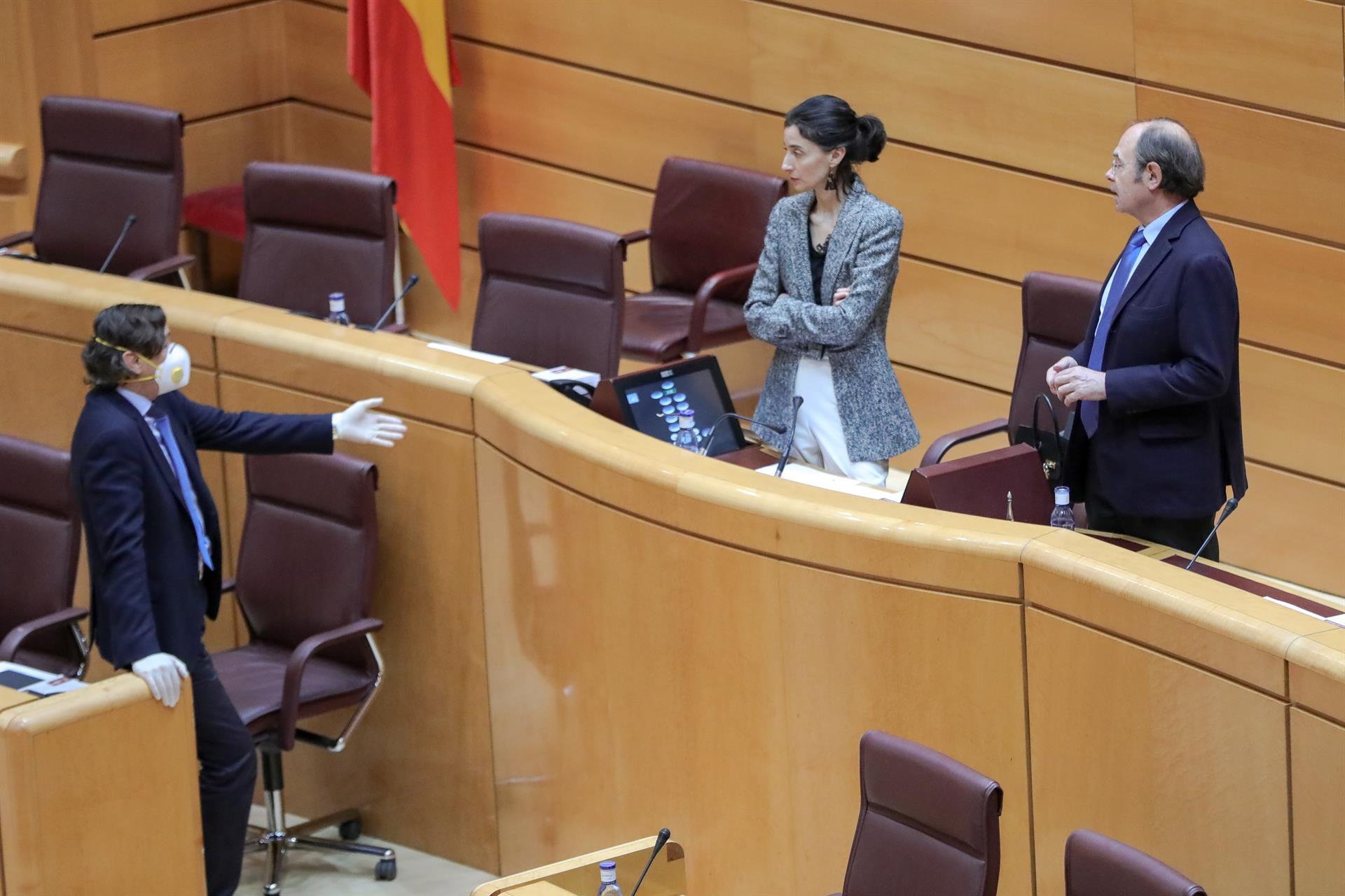 La restricción de movimientos y las recomendaciones sanitarias decretadas por el Gobierno en el estado de alarma con motivo del coronavirus han provocado que se hayan visto también en el Senado imágenes atípicas como la celebración de un Pleno con apenas diez senadores.
