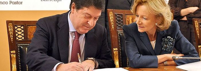 El presidente de Bancaja, José Luis Olivas, en un acto presidido por la vicepresidenta segunda del Gobierno y ministra de Economía y Hacienda, Elena Salgado, firmó la adhesión de Bancaja a estas líneas de financiación, que se pondrán en marcha a principios de año.