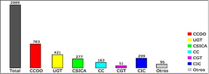 VALENCIA (VP). Con el 72% del voto escrutado, el sindicato Comfia-CC OO obtendría 783 representantes sindicalesen el sector de las caja de ahorro, informó la agrupación en un cmunicado. El siguiente sindicato en orden de representatividad es UGT con 421 delegados, 362 menos que Comfia-CC OO. De esta manera, CC OO mantiene su posición como sindicato mayoritario en el sector y aumenta su diferencia con UGT.