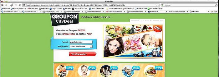 Desde su fundación en 2008 por Andrew Mason, Groupon ha crecido a un ritmo vertiginoso. La compañía, cuyo nombre es una combinación de 'group' y 'coupón', está especializada en ofrecer a sus clientes descuentos en compras a granel. Los suscriptores reciben notificaciones cada día, en función de su localización y perfil.