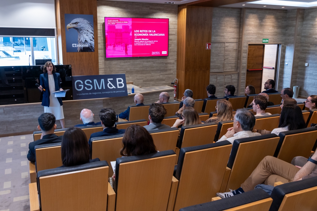 En la bienvenida del evento, Laura Vicente, socia directora ejecutiva de GSM&B, ha destacado que "Joaquín Maudos es un gran amigo y ya nos visitó en 2013, en una sesión donde también abordamos los retos y dificultades de la economía valenciana". Y destaca que esta nueva visita llega, más de diez años después, en los que "hemos sobrevivido a una crisis, la covid, la inflación derivada de una guerra, la dana, y ahora, los aranceles".