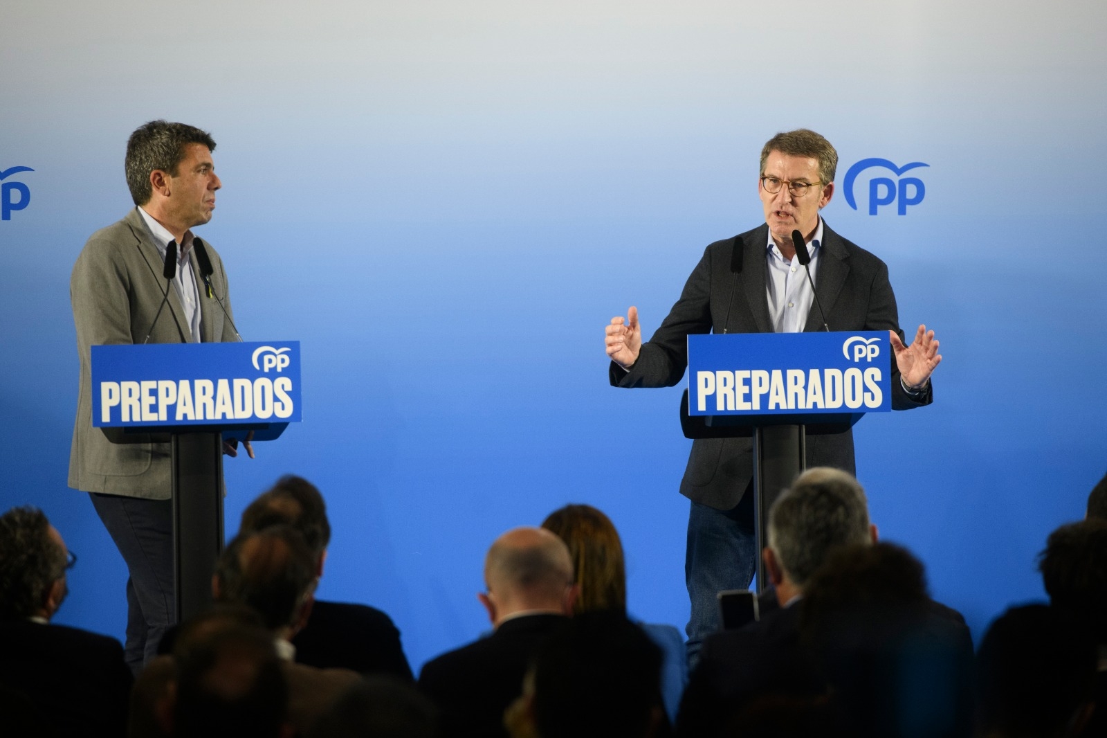 En su intervención previa, el presidente del PP valenciano, Carlos Mazón, ha animado a Feijóo a liderar "un cambio deseable y urgente" y ha celebrado que inicie el periplo en València "ante su próxima alcaldesa", Mª José Catalá, y "ante un partido unido y fuerte".