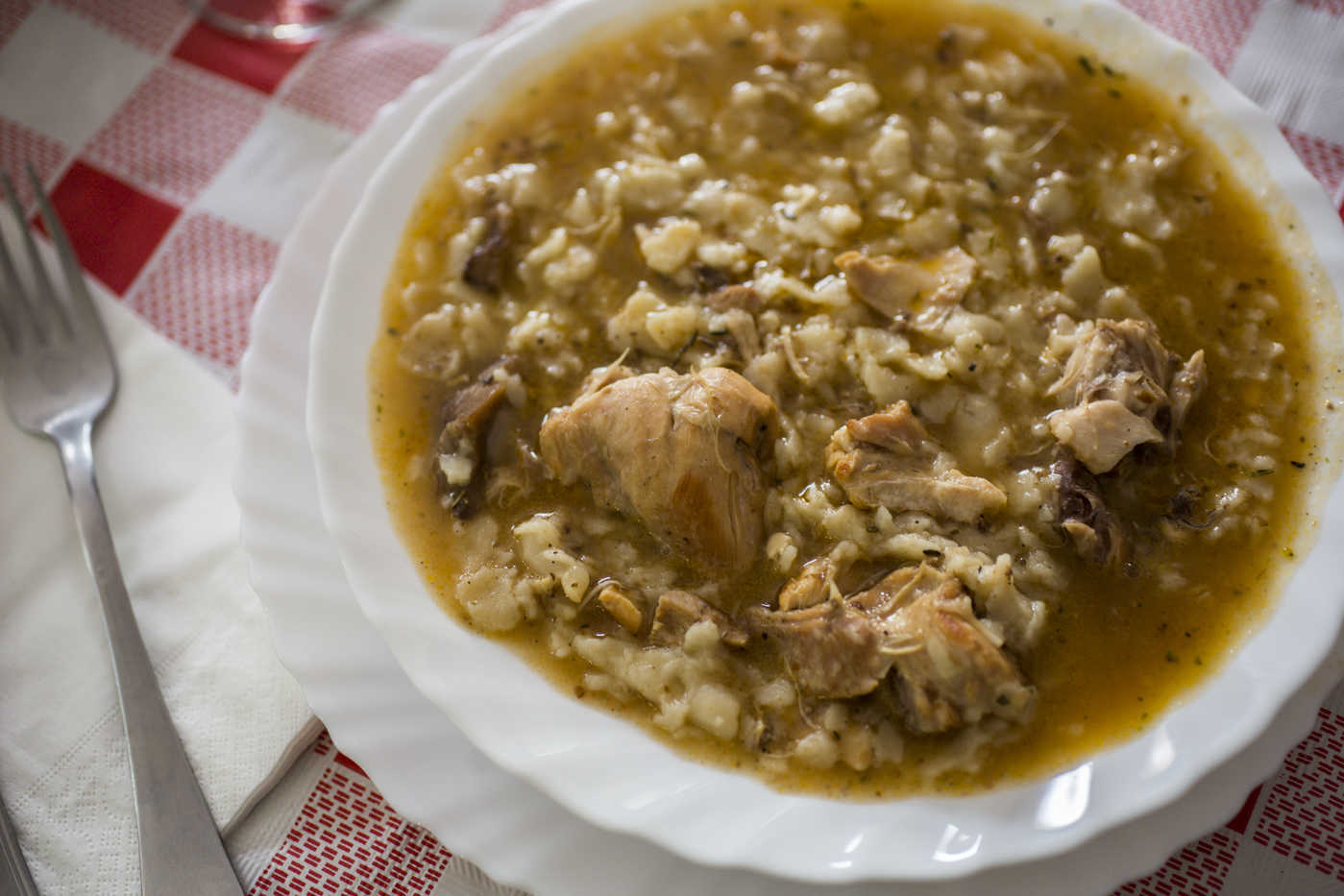 Juani no me quiere decir su edad, pero sí que lleva aquí toda la vida, desde que se casó. No es muy expresiva, pero me advierte que el gazpacho que está cocinando y que estoy a punto de probar "no es como lo hacen aquí en Requena, sino en Ayora". Me explica la receta, pero sin revelarme por qué está tan bueno. "Se sofríe el conejo, el pollo campero y el hígado del conejo. Se echan los revollones y el tomate y le añado el agua. Tiene que hervir. Yo lo dejo toda la mañana hirviendo, hasta que la carne se deshaga. Pico un diente de ajo y más hígado antes de poner la torta y le tiro las especias". ¿Qué especias?, le pregunto. "Pues las del gazpacho". Pues eso.