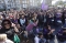 En medio de las declaraciones, un pequeño grupo de mujeres ha conseguido sorprender a los espectadores al aparecer con sus torsos desnudos y máscaras moradas, que portaban pancartas en las que se podía leer "sin las mujeres, no hay revolución".