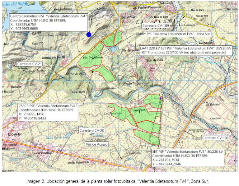 En concreto, la planta se proyecta en dos zonas. La zona norte se ubica al suroeste l'Alcora con 16 subconjuntos donde se ubicarían las placas solares en una superficie de 246 hectáreas.