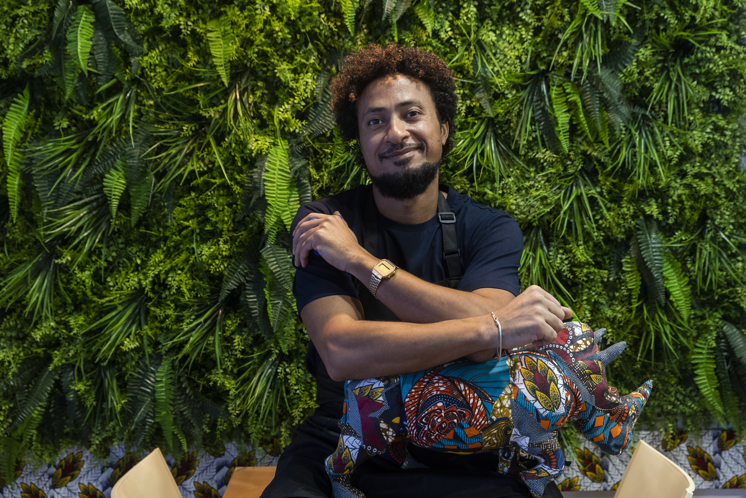 “El nombre del local, Muff, es una expresión muy coloquial que utilizamos los guineanos cuando estamos entre amigos. Sirve tanto para estar de cachondeo como para expresar cabreo”, nos explica Ru. Otra referencia curiosa es el gorila albino que vemos en el logo. Es -ya lo habías adivinado- Copito de Nieve, que tras su muerte en 2003 continúa siendo todo un emblema en Guinea Ecuatorial.