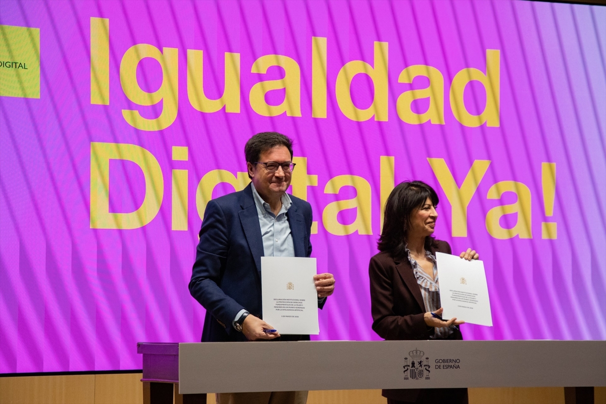 Así lo ha anunciado el ministro para la Transformación Digital, Óscar López, este jueves, durante la firma de una declaración institucional y un convenio de colaboración junto a la ministra de Igualdad, Ana Redondo, en el marco del acto 'Igualdad digital', celebrado con motivo del Día de la Mujer, que se celebra este domingo 8 de marzo.