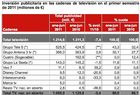 La inversión publicitaria en televisión en general fue de un -7,4% inferior en los seis primeros meses de 2011 respecto a la del año anterior, pasando de una cifra de 1.311,3 millones de euros en enero-junio de 2010 a los 1.214,6 millones en el mismo período en este año.