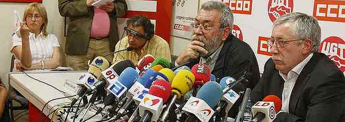 "En el actual escenario socioeconómico, marcado por los recortes, y ante cualquier tipo de reforma del mercado de trabajo lesiva para los trabajadores, CCOO y UGT, procederán a la convocatoria de una huelga general", avisaron los secretarios.