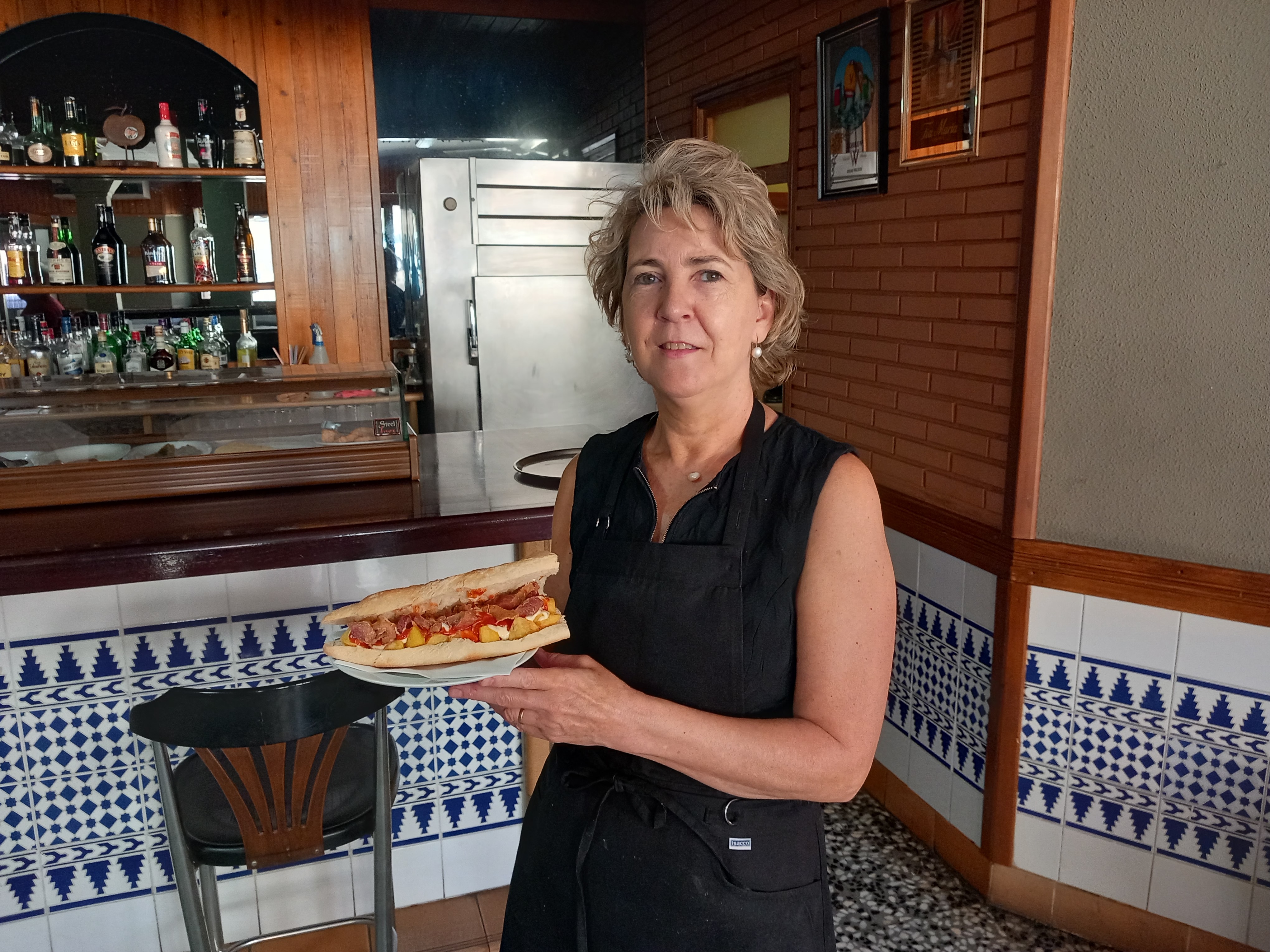 Cuando te dicen por primera vez de qué se trata, a pesar de ser una comida simple, lo más normal es que preguntes “¿pero qué dices que lleva?”. Patatas bravas y morro. Eso era lo que pedía a menudo un asiduo, un tal Montesinos, una bravas y una de morro. Hasta que un día, en vez servirle lo pedido en plato, le lo pusieron en bocadillo. Posteriormente fueron muchos Montesinos quienes lo probaron y les gustó. La combinación resulta espectacular y jugosa. No les miento. Ni empalaga, ni pasa por la boca de puntillas. Tiene una contundencia estricta, la de aquello que está cocinado de la única manera que puede funcionar. Aquí, la mano que lo consigue es la de Mari Ángeles. Consigue unas bravas perfectas y un morro perfecto, es decir, ambos productos salen con un toque crujiente por fuera (en absoluto duros) y tiernos por dentro. A esto se le puede llamar éxito.