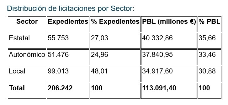 En la Comunitat Valenciana, la actividad es igualmente significativa. Según la Memoria de Actividades de la Junta Superior de Contratación Administrativa correspondiente al ejercicio 2024, solo la Generalitat y su sector público instrumental formalizaron 44.604 contratos, por un importe total adjudicado de 2.104.668.965,17 euros (excluido IVA). De ellos 15.128 fueron contratos menores (el 33,91 % del total), pero representaron apenas el 3,34 % del importe adjudicado; y el resto (contratos no menores) supusieron el 66,09 %   y concentraron el 96,66 % del importe total. A estas cifras habría que sumar la también muy relevante actividad del resto del sector público valenciano: diputaciones provinciales, ayuntamientos, organismos autónomos y demás entidades locales y supramunicipales. Cuando se agregan todos estos ámbitos, el volumen total de contratación pública en la Comunitat Valenciana supera ampliamente los 11.000 millones de euros anuales y se traduce en decenas de miles de procedimientos, muchos de ellos perfectamente accesibles a pymes.