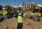 Mientras andaban, decenas de personas les han gritado y lanzado objetos y barro. Agentes de Policía y Guardia Civil y militares han tratado de contenerles y proteger a las autoridades.