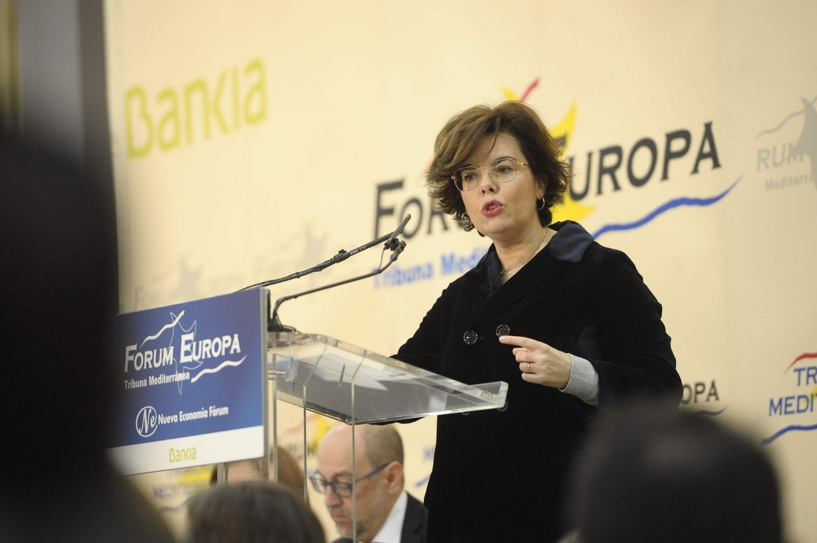 La vicepresidenta del Gobierno se ha pronunciado en estos términos en un desayuno informativo del Fórum Europa Tribuna Mediterránea en el que ha presentado una conferencia de la presidenta del PPCV, Isabel Bonig, al ser preguntada por el aplazamiento del pleno de investidura de Puigdemont y los mensajes de móvil, publicados este miércoles, del exjefe del ejecutivo catalán en los que asegura que "Moncloa triunfa" y que el procés "se ha terminado".