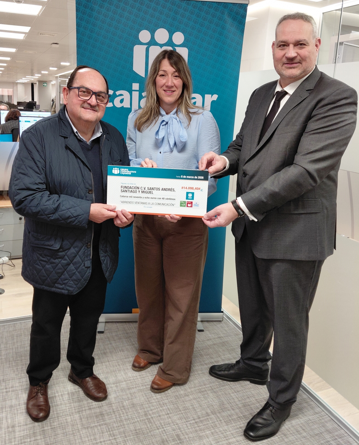 El Equipo Solidario de Grupo Cooperativo Cajamar ha donado 14.000 euros a la Fundación Santos Andrés, Santiago y Miguel (SASM) de Sueca para el desarrollo del proyecto Abriendo ventanas a la comunicación: fomento de la comunicación de las personas con discapacidad intelectual mediante sistemas aumentativos y alternativos a la comunicación.