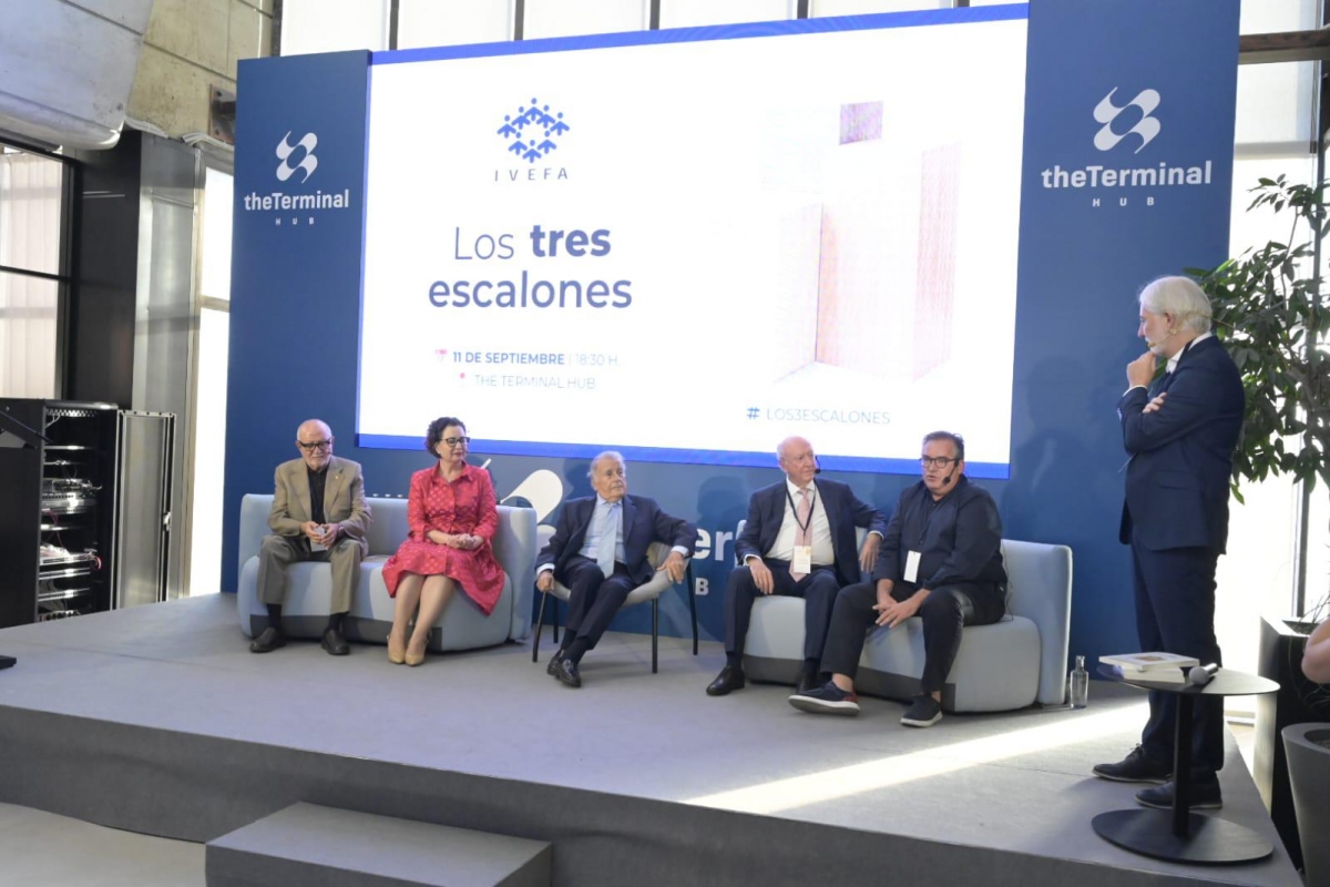 VALÈNCIA. El Instituto Valenciano para el Estudio de la Empresa Familiar, Ivefa, ha celebrado durante la tarde de hoy un emotivo acto con motivo de la presentación del libro “Los Tres Escalones”, una obra que recoge el legado y la evolución de la asociación a lo largo de casi 30 años. El evento, celebrado en un ambiente de celebración y memoria, reunió a la mayoría de sus protagonistas en un mismo acto en The Terminal Hub, en el puerto de Valencia.