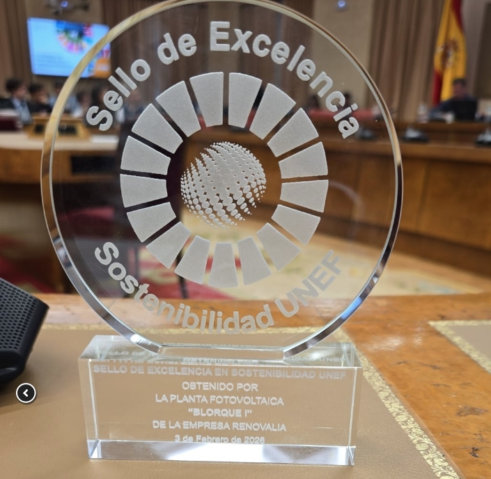 VALÈNCIA / MADRID. Renovalia, compañía líder en el sector de energías renovables, anuncia que una de sus plantas fotovoltaicas en Guadalajara (Bolarque, 126 MW) ha sido galardonada con el Sello de Excelencia en Sostenibilidad otorgado por la Unión Española Fotovoltaica (UNEF).