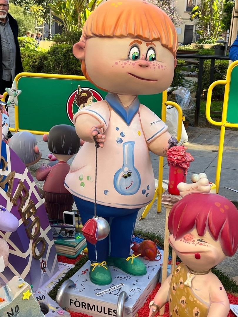 "Entre humor, experimentos e imaginación, esta falla quiere despertar la curiosidad de los más pequeños y recordarnos que la ciencia está presente en todo los que nos rodea. Porque gracias a la investigación, el esfuerzo y las buenas ideas, muchas veces alguien acaba gritando ¡Eureka!", destaca el presidente de la comisión Guillem Sorolla-Recaredo, Carles Berriales. Este primer premio está dotado con 800 euros y estandarte.