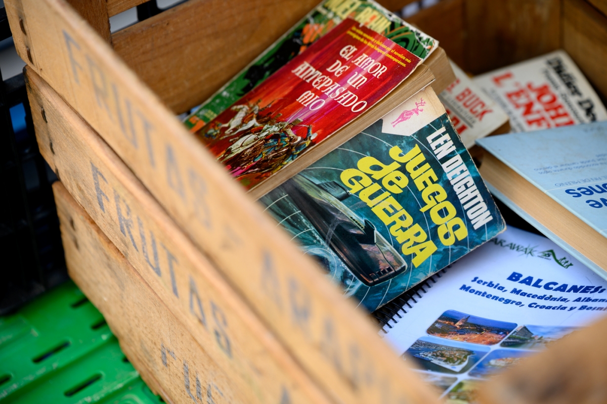 Lo suyo es vender los libros, no escribirlos. Y para eso buscó un local en Ruzafa, por donde pasan muchos turistas y mucha gente. “En mi barrio, en Jardín de Ayora, me hubiera muerto del asco. Ahora vendo a gente que viene de paso, pero también tengo mi clientela en el barrio, sobre todo de gente que viene a comprar los libros que les piden en el instituto”. Le da para vivir sin alardes. “Cuando abrí, iluso de mí, yo pensaba que se iba a vender más. Incluso hubo un momento, cuando llevaba un año, que tenía problemas para conseguir libros. A partir del segundo año, y sobre todo después de la pandemia, ya fue avalancha”.