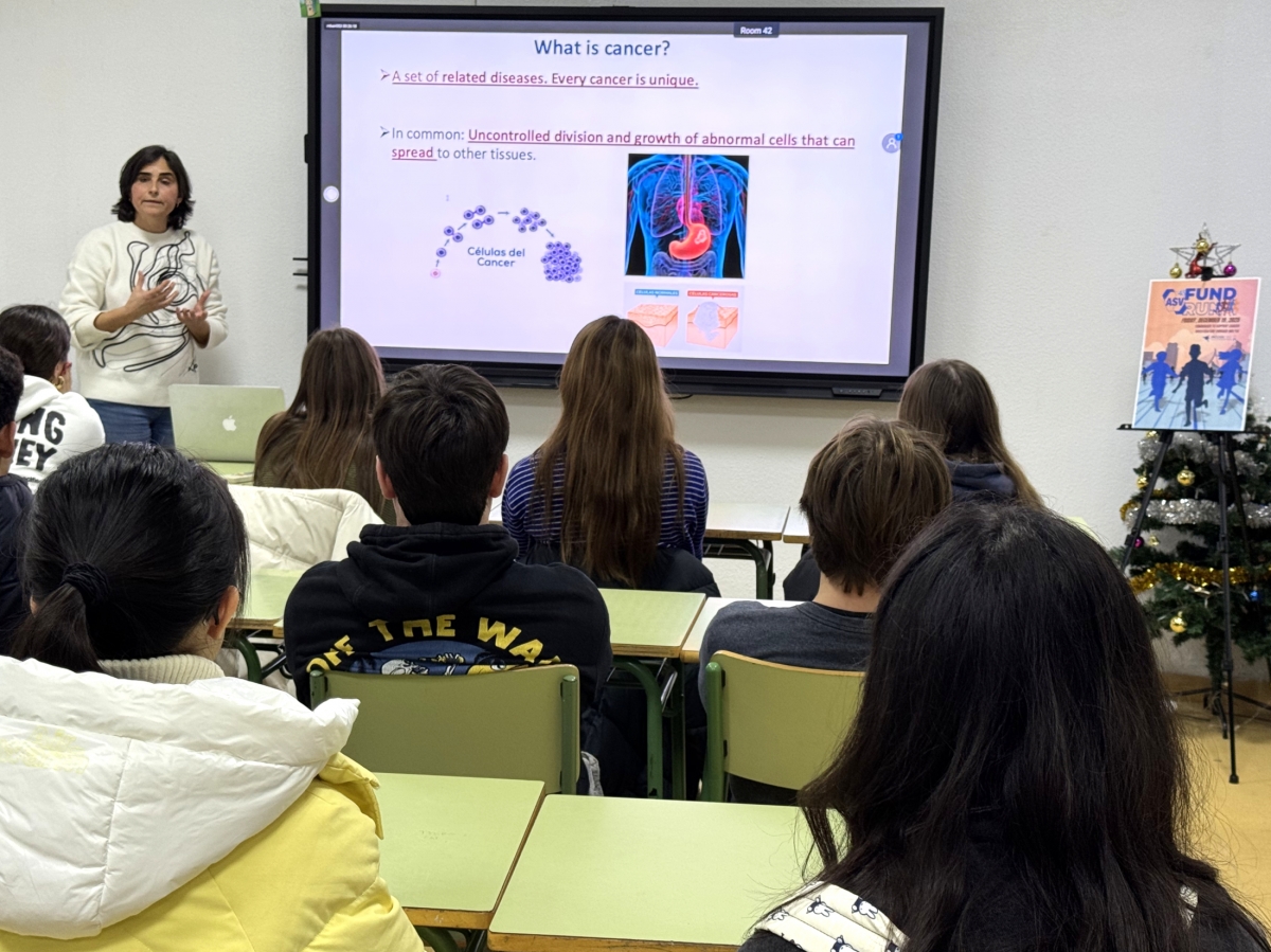 La campaña ha contado con un componente educativo. Estudiantes de Bachillerato asistieron a principios de semana a una charla divulgativa sobre oncología ofrecida por tres investigadores de INCLIVA y visitarán en enero sus laboratorios de investigación.