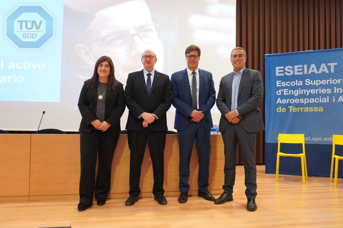 MADRID (SERVIMEDIA). La Cátedra TÜV SÜD-UPC de Integración de los criterios ESG en la estrategia de la empresa ha celebrado la jornada 'Edificación y el valor del activo inmobiliario' en la Escola Superior d'Enginyeria Industrial, Aeroespacial i Audiovisual de Terrassa, con la participación de Xavier Roca-Ramon, director general d'Indústria de la Generalitat de Catalunya; Jordi Voltas, director de la ESEIAAT de la UPC; y Josep Maria Arnau, CEO de TÜV SÜD Iberia.